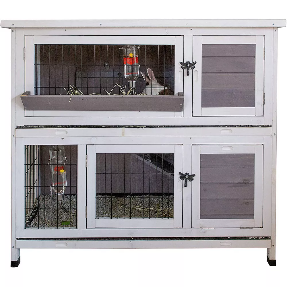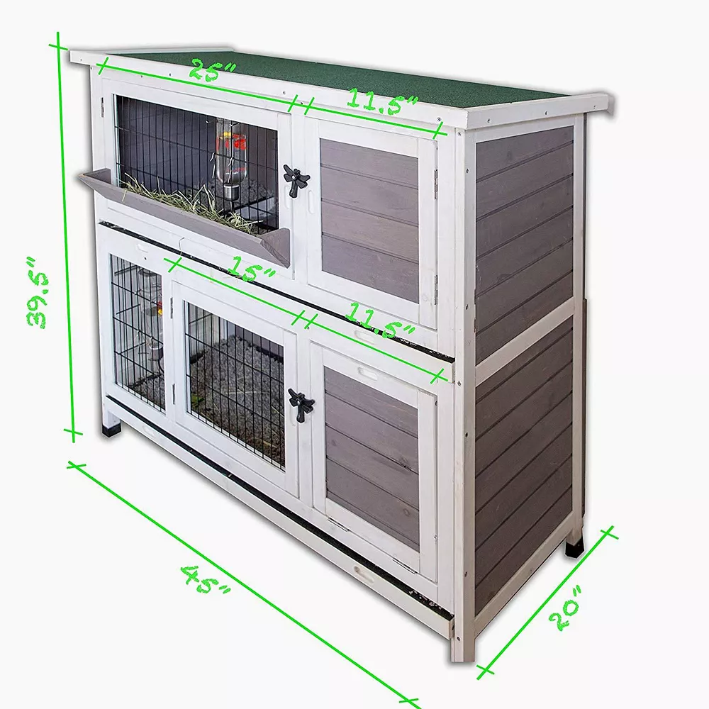 A rain-resistant top on this pet home permits you to set up this hutch inside or outside. All panels are already pre-assembled for this bunny house, allowing you to easily match the panels with their corresponding hardware and build the structure in only 30 to 60 minutes.