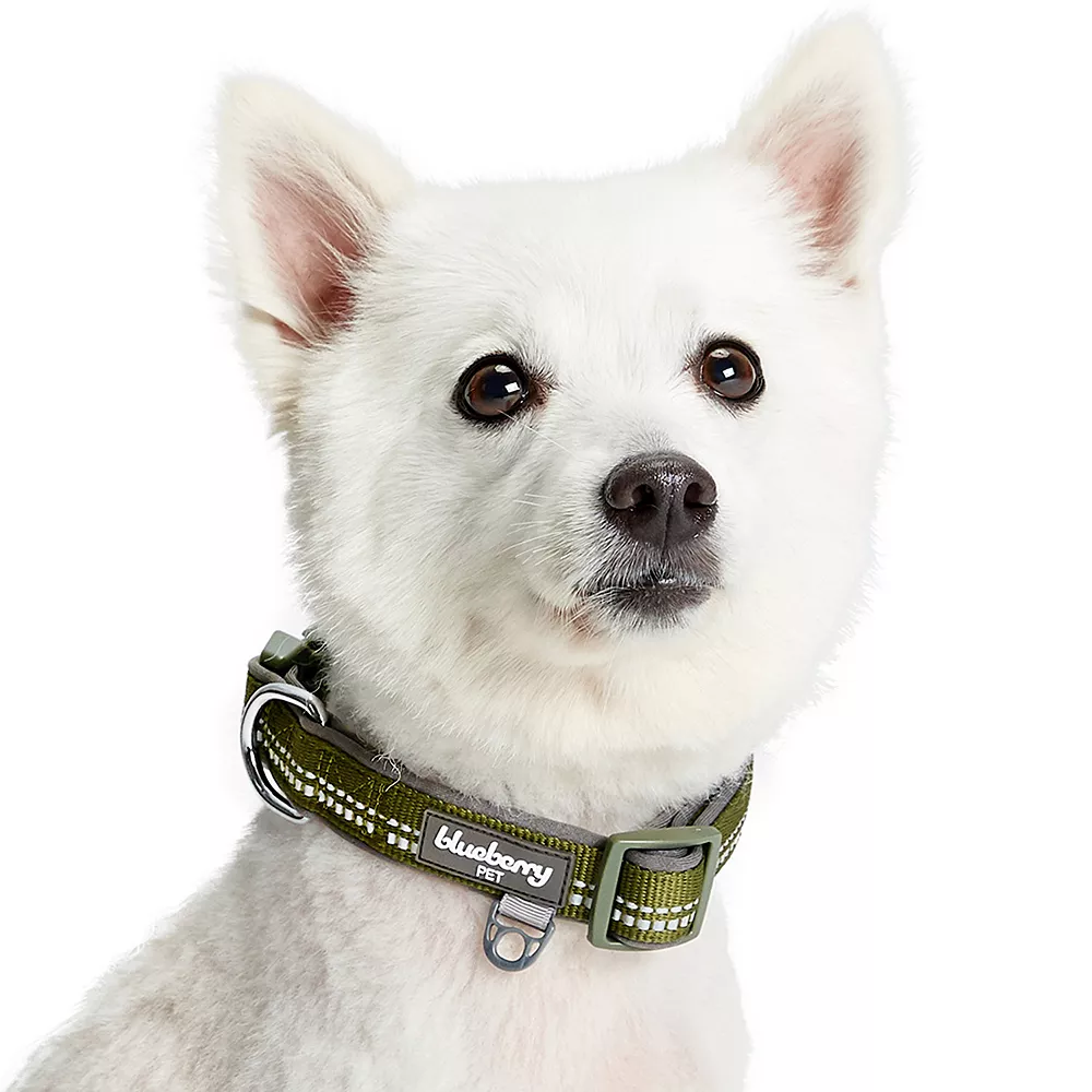 Give your pooch a fun new look with this colorful and comfy reflective dog collar from Blueberry Pet.