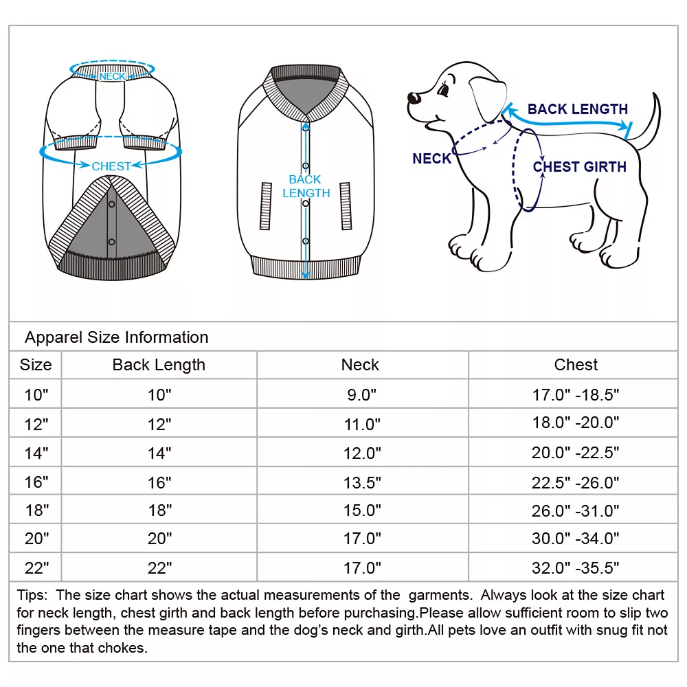- L/XL: Back Length 16″, Chest Girth 22.5″- 26″, Neck 13.5″
