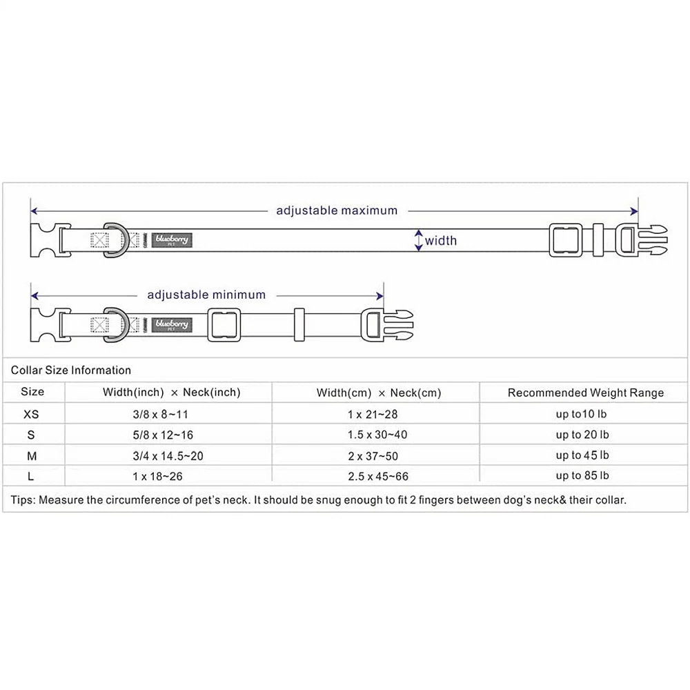 - Collar- (14.5″-20″L) Neck x 3/4″W x 0.2″D,(12″-16″L) Neck x 5/8″W x 0.2″D,Collar – (18″-26″L) neck x 1″W x 0.2″D