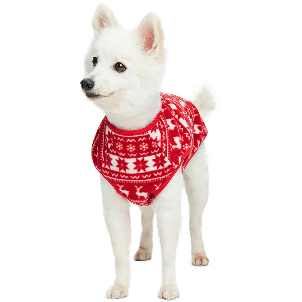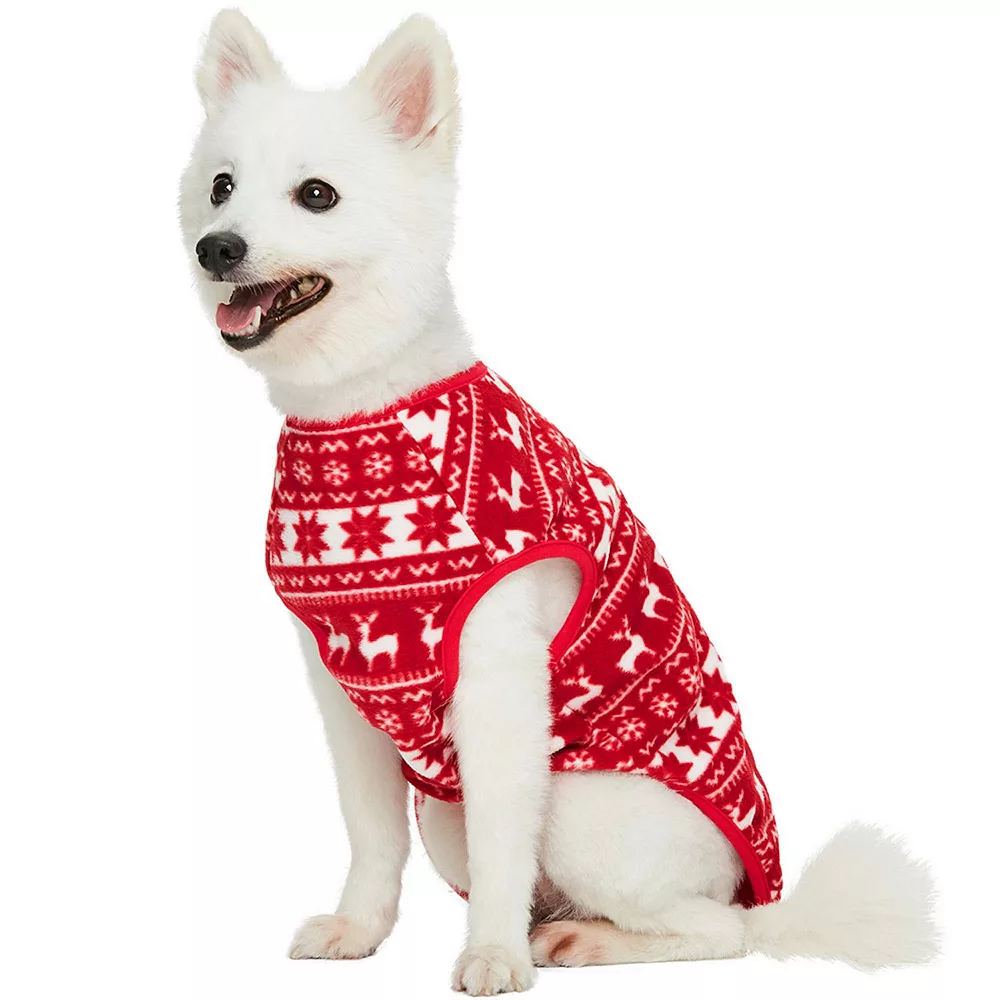 Keep your pup comfy with this Blueberry Pet Christmas Reindeer & Snowflake Fleece Crewneck Dog Sweater Vest.