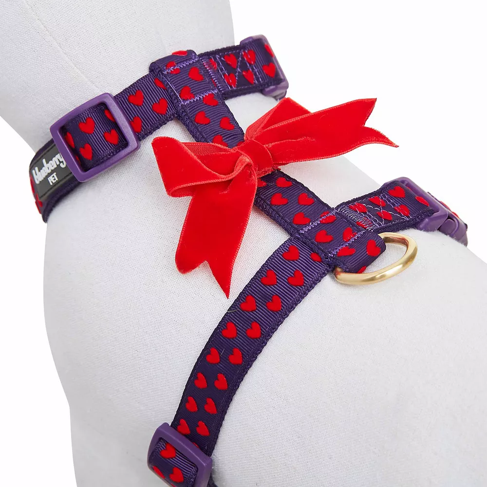 Make walks more enjoyable with this Blueberry Pet Velvety Heart Flocking Dog Harness.