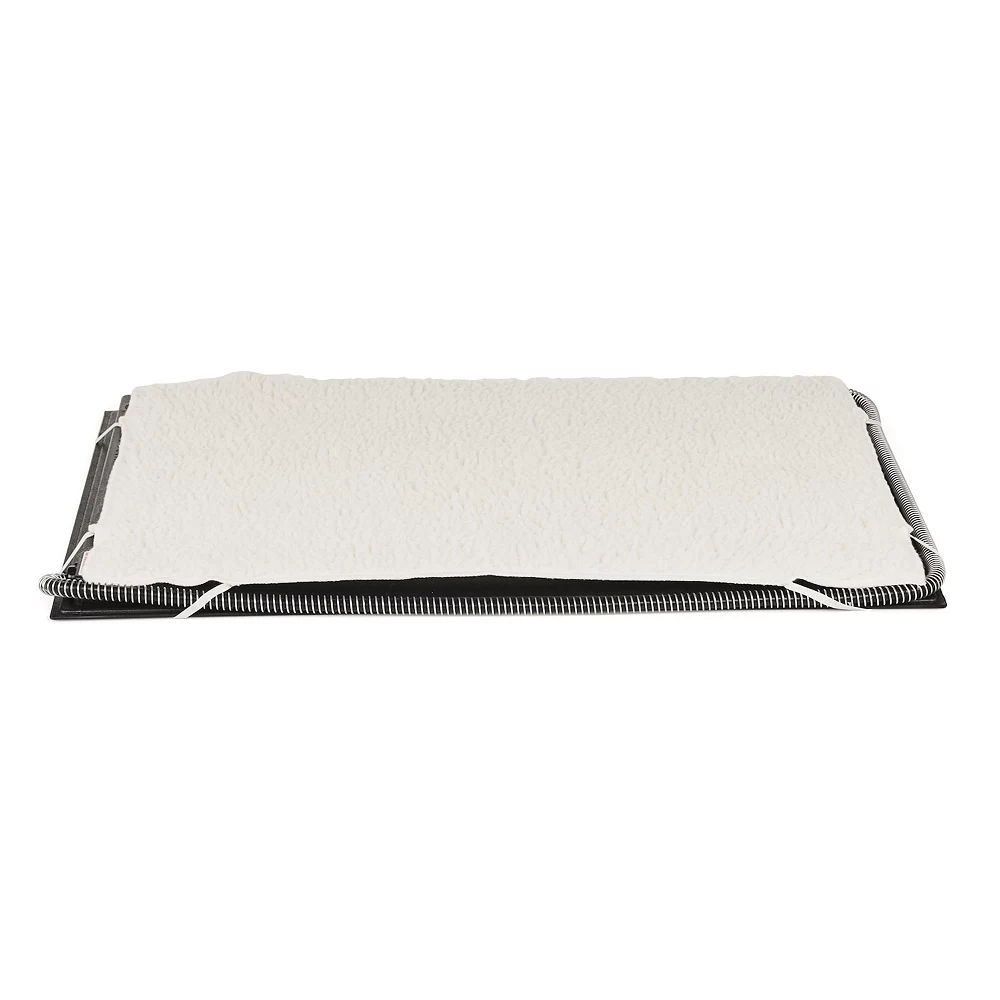 Constructed from high-impact ABS plastic, this mat is ultra-durable and protected against harsh weather elements. The faux lambskin fleece cover provides a soft surface for your pet to rest while staying warm. Powered at 70 Watts, the heated mat is thermostatically controlled to help maintain your pet’s body temperature. The temperature ranges between 100-105 degrees Fahrenheit and turns on and off automatically so it does not overheat. The custom built-in red indicator light shows when the mat is operating. The heavy-duty anti-chew cord protector deters your pet from chewing on the power cord.