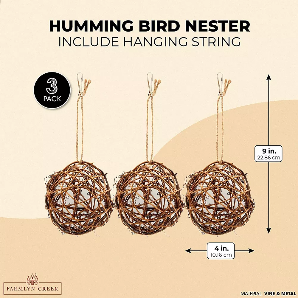 - Hanging Toy: Easily hang the hummingbird nester on a tree branch or cage; these are filled with silk floss to keep your birds active for long periods of time