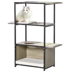 PawHut 48″ Cat Activity Tower With 3 Climbing Levels 1 Condo And Removeable Cushions Grey/Black