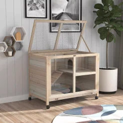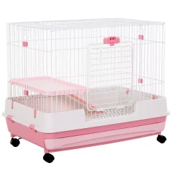PawHut 32″ 2 Level Indoor Small Animal Cage Rabbit Hutch With Wheels Perfect For Exotic Rodents Pink