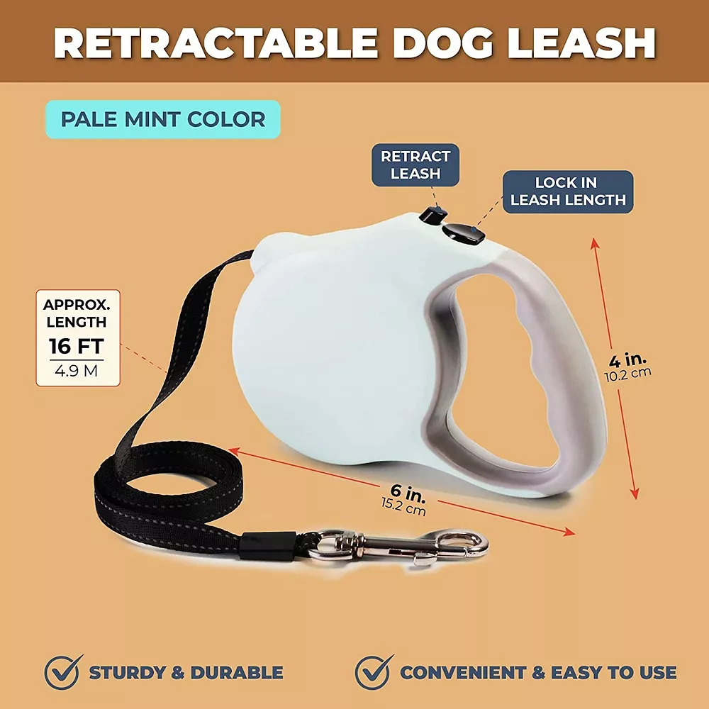 This heavy-duty Retractable Dog Leash is great for walking your dog around the neighborhood or the park. The sturdy leash measures approximately 16 feet long and can ensure your dog will not