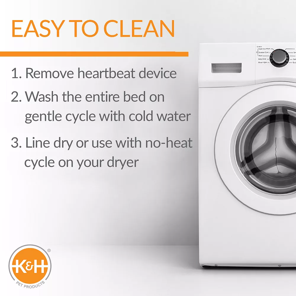 - Heartbeat device is easily removed from the top pocket to machine wash, yet not easily assessable to puppy