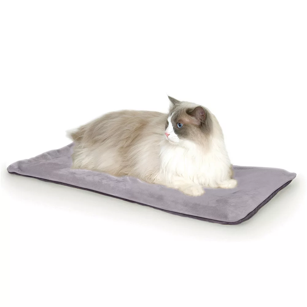 The K&H Thermo-Kitty Mat is an affordable heated pet mat with a dual thermostat heater buried beneath soft foam to make a comfortable napping place for cats.