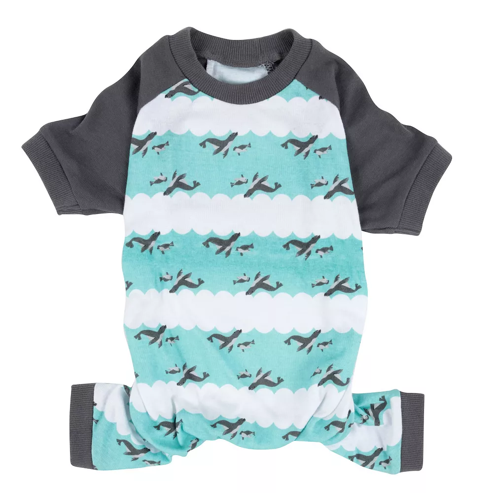- Pajamas shown modeled in size Medium on a French Bulldog and a Large on an English Cocker Spaniel