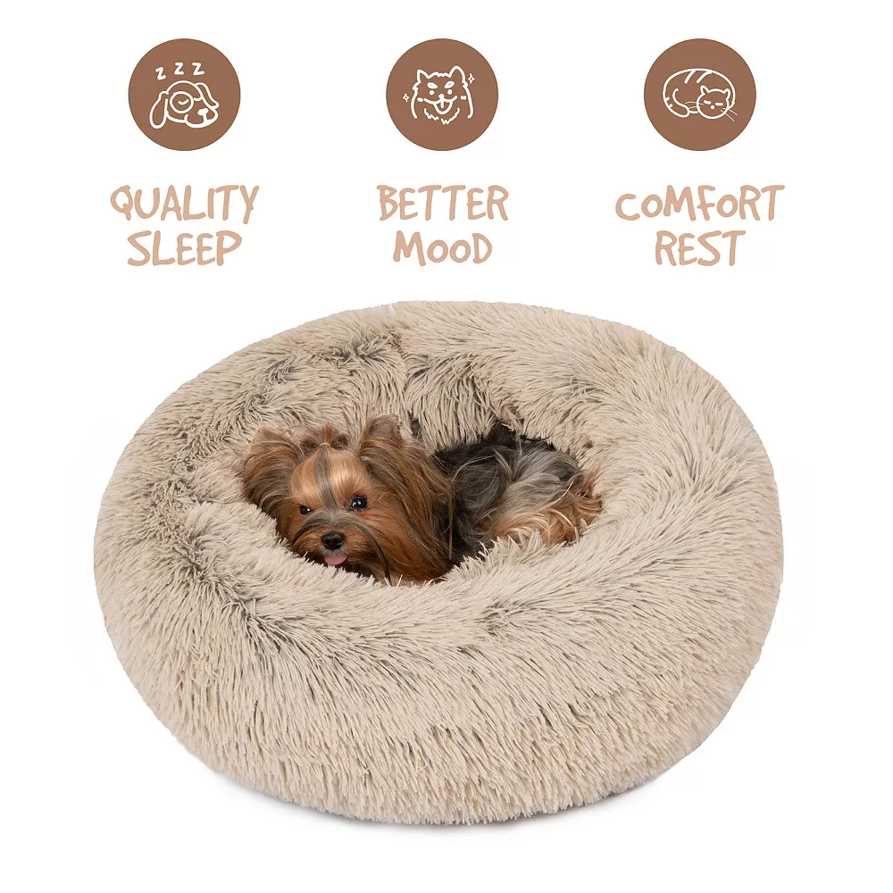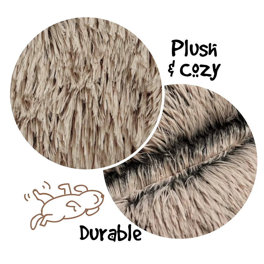 - Ideal for pets to curl up or sprawl, the raised rim around provides warmth with a sense of security. It helps them to calm down faster, ease anxiety, and sleep well. High-quality synthetic plush fur, comfortable and breathable. Exceptional support for head and neck, offers relief for dogs and cats with joint pain or arthritis. Made of non-toxic materials.