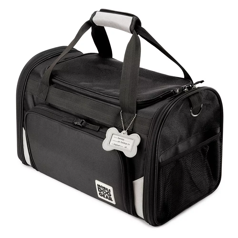 Mobile Dog Gear Pet Carrier Plus allows you to travel with your dog with ease as it not only keeps your dog safe, but comes with a feeding system.