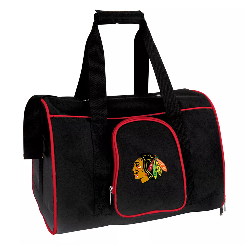 Carry your furry friend with pride in this Chicago Blackhawks pet carrier from Mojo.