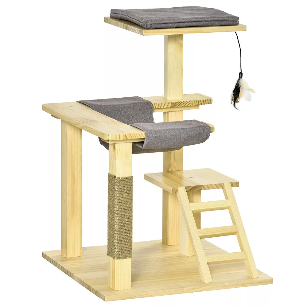 - STURDY & PRACTICAL: Solid pine wood keeps the whole cat play tower strong, stable, and pet-friendly. Bring home an activity center that makes a healthy and safe space for your furry friends.