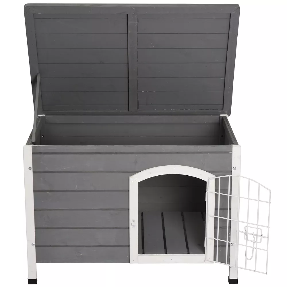 - MODERN STYLE & LARGE TOP: Made of fir wood panels with gray color painting, you can combine it with your other home furniture. And the dog kennel equips with a large top, perfect for placing pet supplies.