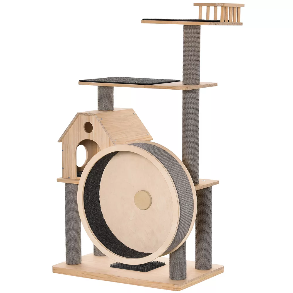 - ROTATING RUNNER: a rotating runner allows your cat to exercise and avoid obesity. The surface of this cat tree covered with grey sisal carpet, that is scratch-resistant and wear-resistant, and the inner with household carpet offers a smooth-running experience for your cat.