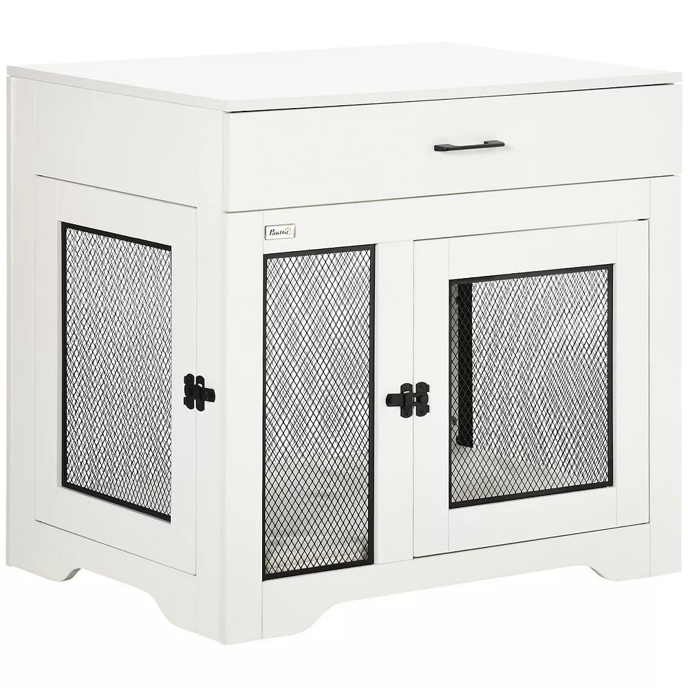 This decorative dog crate furniture contains the sleepy comfort of a pillowy surface, featuring a soft foam and a removable cover that’s washable for easy cleaning. The two doors allow easy entry, and an end table design makes this indoor pet crate a useful home piece that both you and your pup can enjoy. The structural integrity you need for a lifetime will retain its durability and strength throughout everyday wear and tear when you make this PawHut design a part of your home.