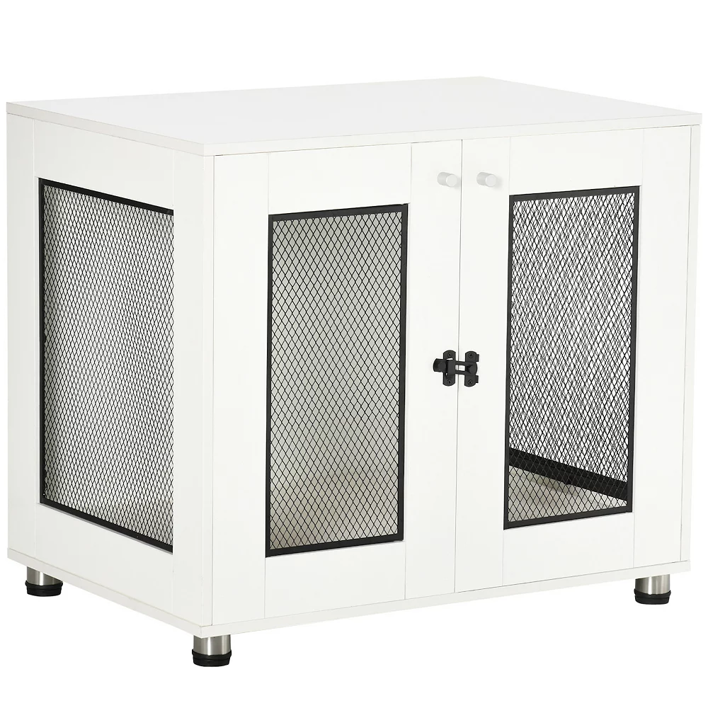 This wood dog crate contains the sleepy comfort of a pillowy surface, offering soft foam and a removable cover that’s washable for easy cleaning. The large double doors make for a big entrance that allows easy pass-through. An end table design lets both you and your pup use the furniture. The structural integrity you need for a lifetime will retain its durability for everyday use when you make this relaxing PawHut design a part of your home.