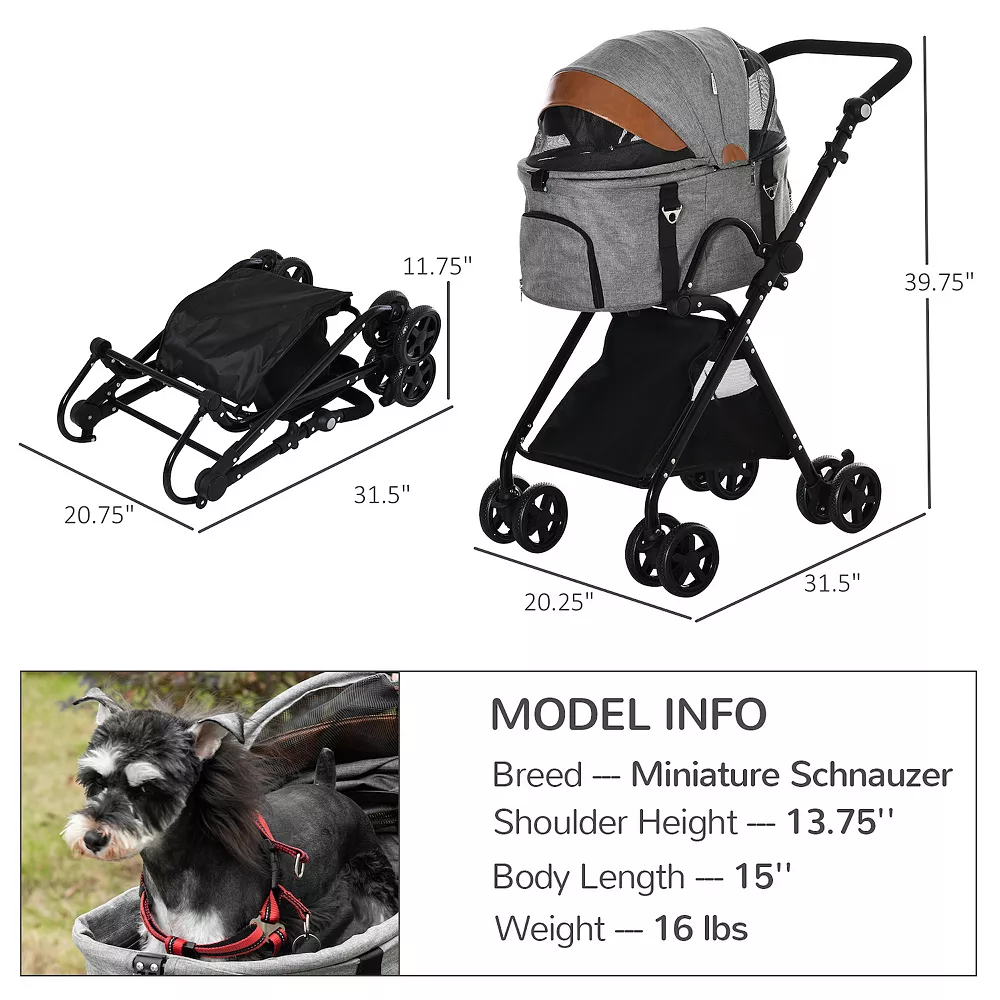 - MULTIPLE USES FOR YOUR DAILY LIFE: This pet stroller for small dogs has a detachable design, and can be used as a pet carrier bag as well as a stroller! It is equipped with a convenient handle on both sides, perfect for daily use.