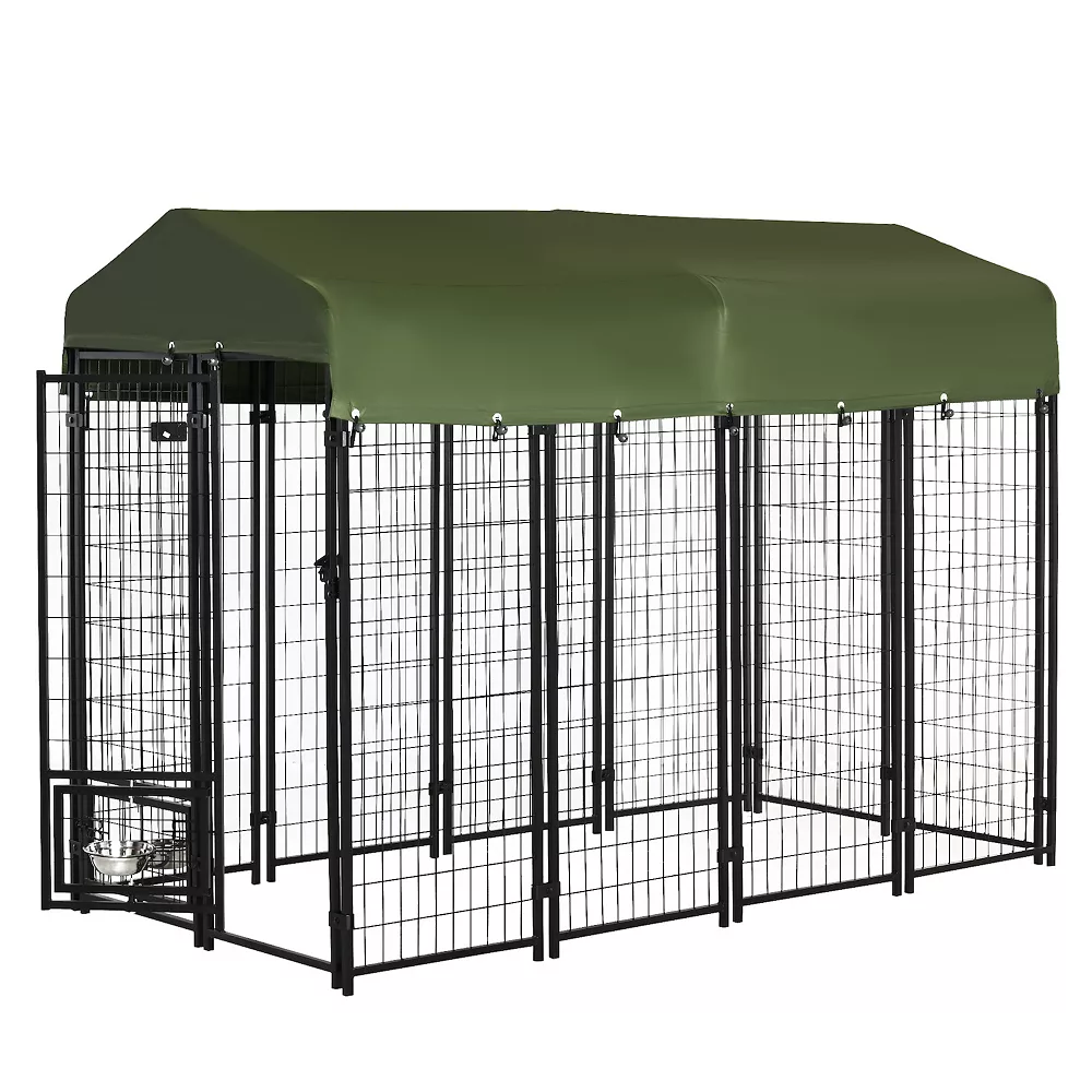 - AMPLE SPACE: This outdoor dog kennel provides roomy space for your dogs to relax without feeling bound. The metal dog playpen assures extra security with a tall enclosure and solid lock.