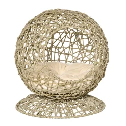 - RATTAN CAT BED: Provide your felines relaxation with a rattan cat dome. Includes a soft linen cushion bed.