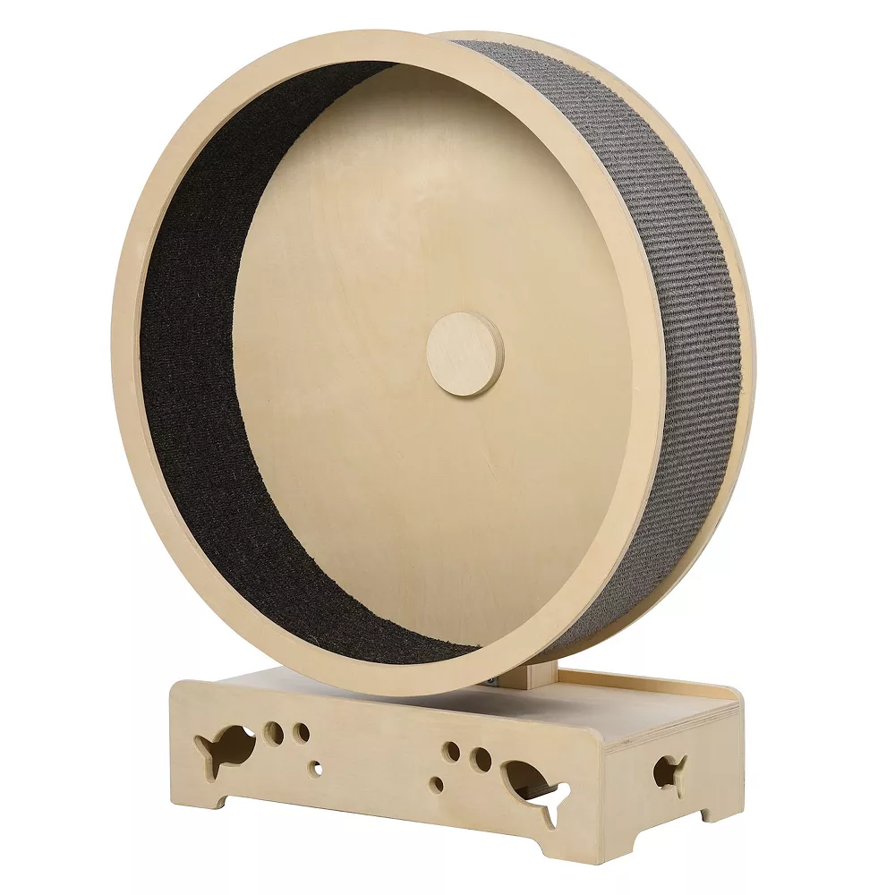 - SAVING YOUR FURNITURE & COMFORT: with a sisal-covered surface, this cat activity tower is perfect for your cats to sharpen their claws, and save your furniture from scratching. The inside of the wheel is covered in the carpet too, which is comfortable and easy on your pet’s paws.