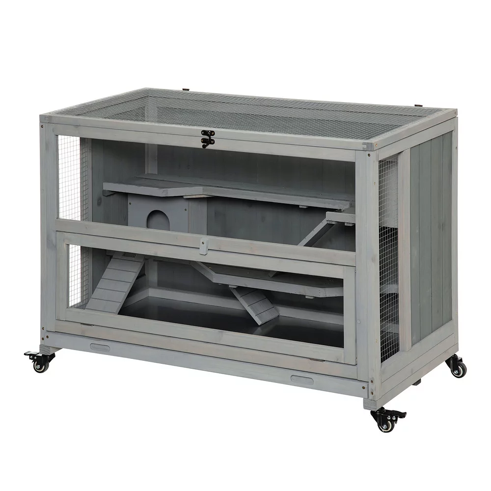 This PawHut hamster cage is the ultimate playground for your small pets to have. This hamster house offers plenty of room with 3 tiers. Made with fir wood with a mesh top opening and a front door, this allows for air circulation and is easily accessible to your pets. The front of the hamster cage has organic windows for viewing. You can place it anywhere and your little hamsters will have an instant home. The whole unit sits above the floor and is an overall great home for your pets.
