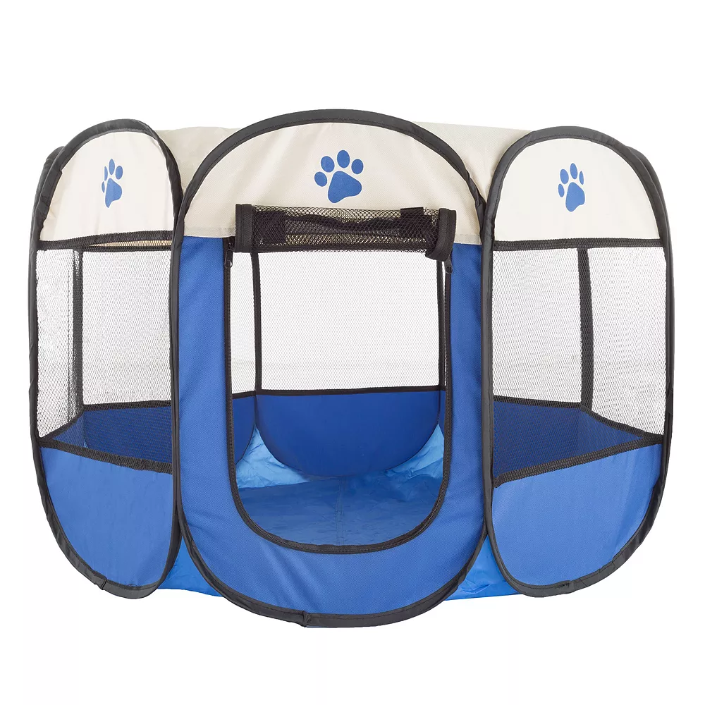 This portable Pop-Up Playpen with Carrying Bag from Petmaker helps keep your pet comfortable and safe at home or on the go.