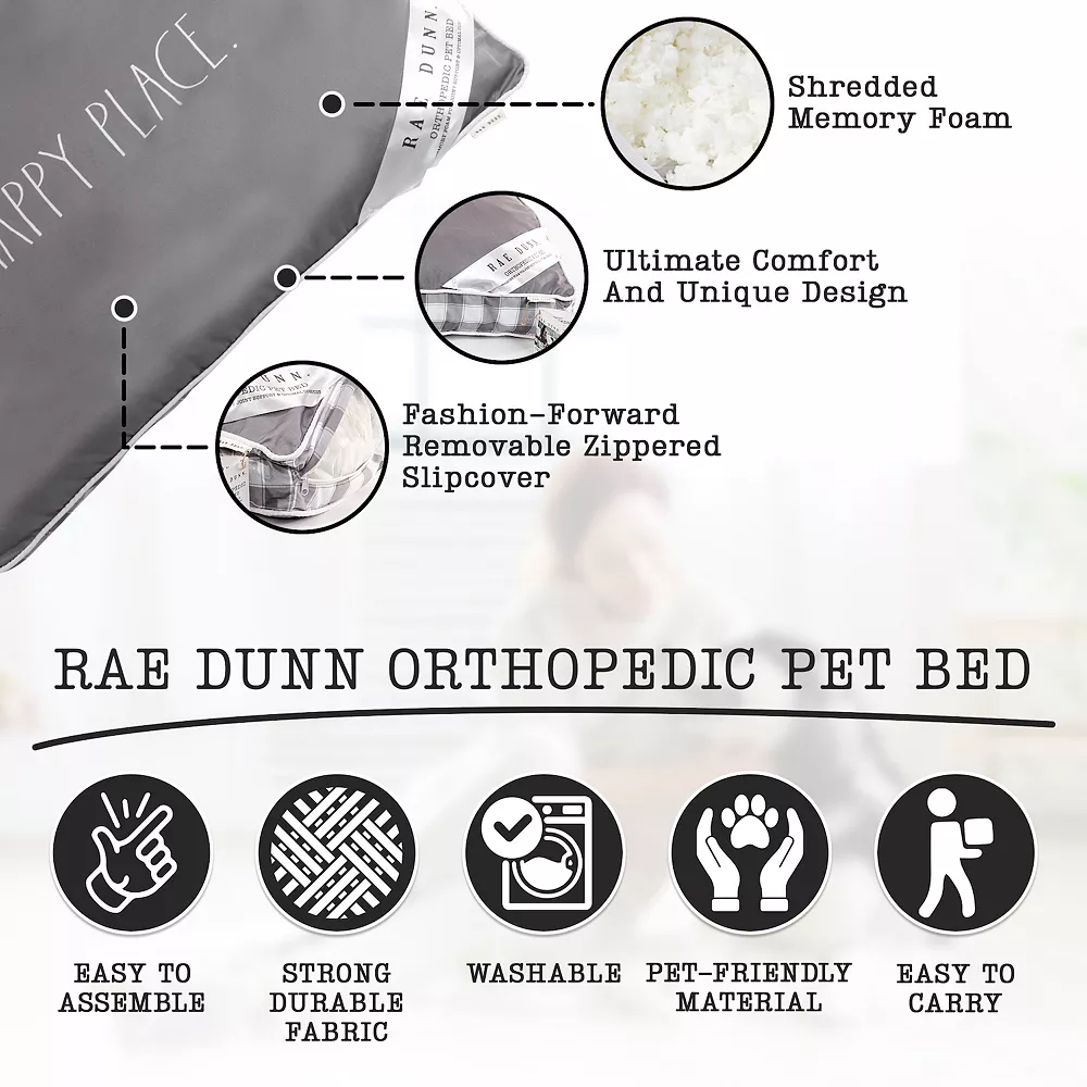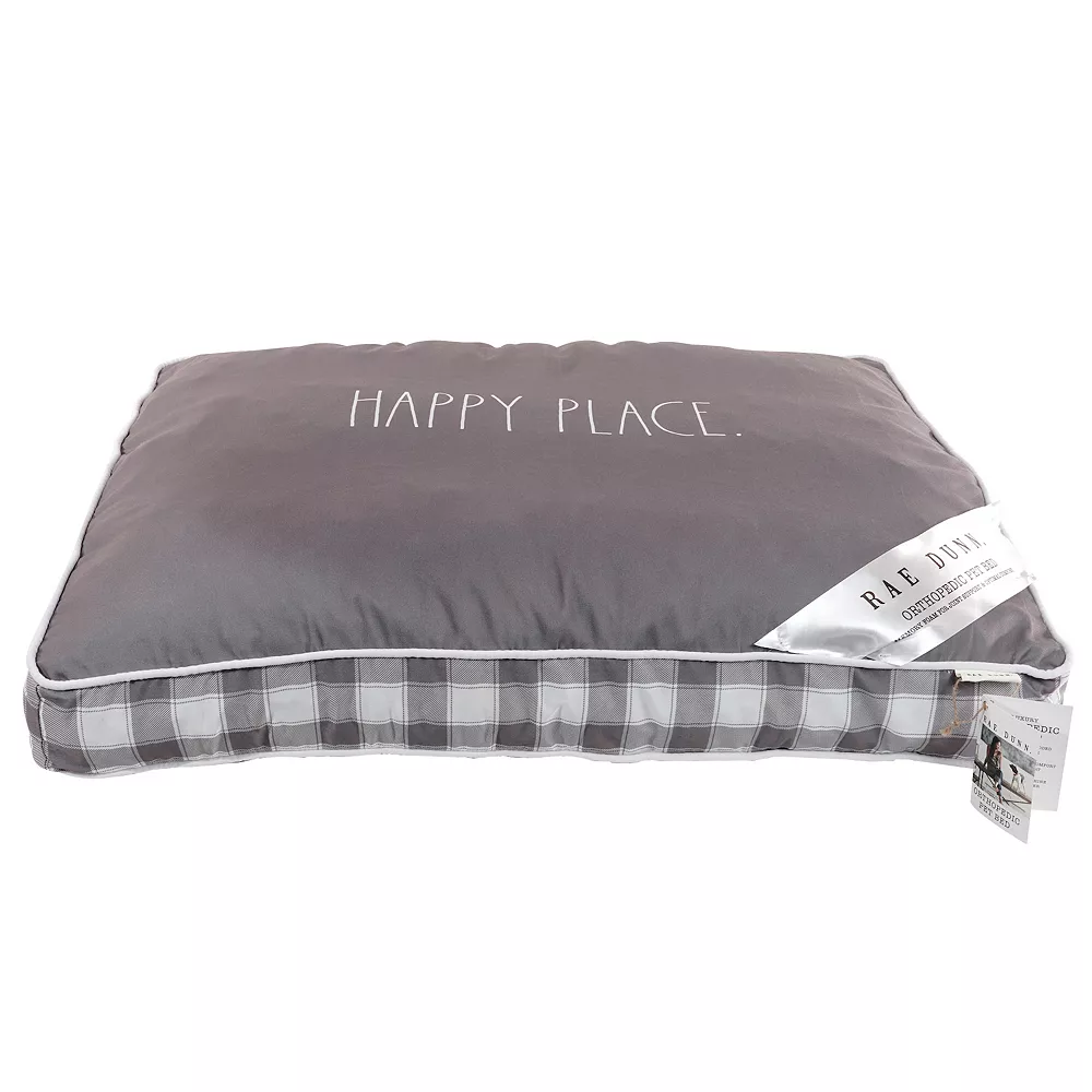 Support your pet’s joints and keep them extra comfortable with this Rae Dunn “Happy Place” Orthopedic pet pillow bed.