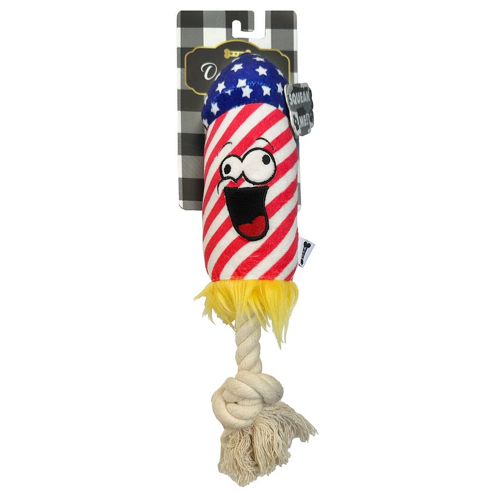 Entertain your pup this holiday with this Woof Firework Plush Rope dog toy.