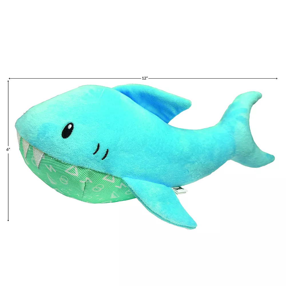 Keep your four-legged friend entertained with this Woof Shark Oxford Plush dog toy.