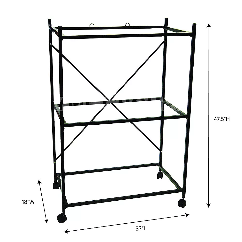 Stand for cage model#2474 and 2464 in Black. It has heavy duty casters and hold 3 Cages. Dimension for the stand is 30.5Lx18.5Dx48H.
