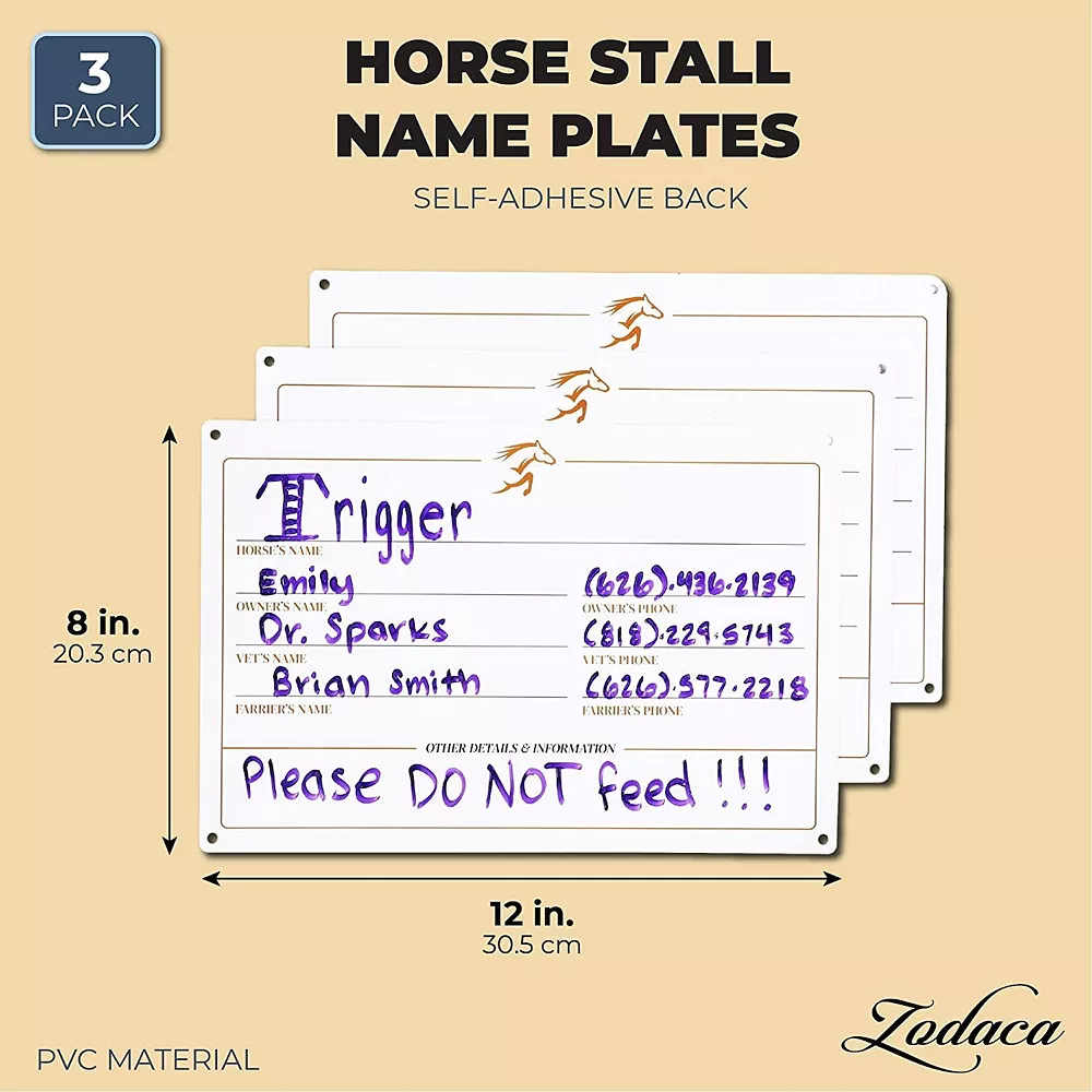 - Dry Erase Sign: These name tags are perfect to attach onto any smooth surface to inform people about your horse’s name and important information